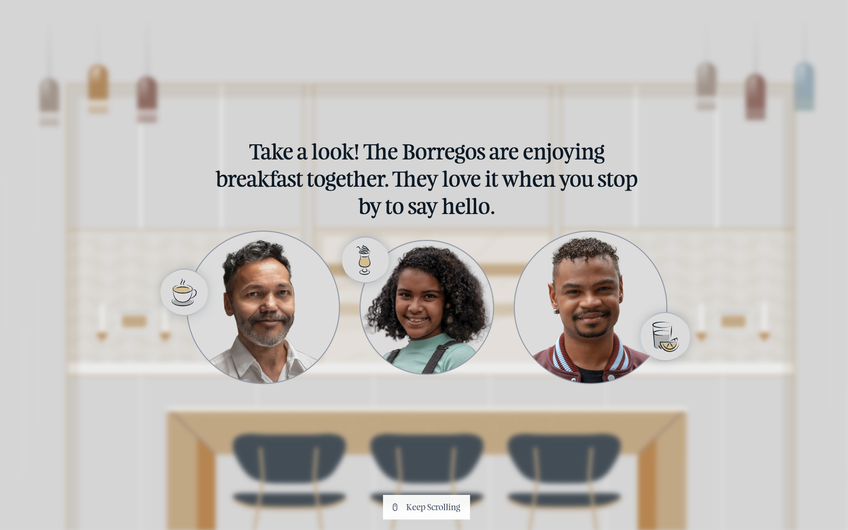 We chose photography for the characters to emphasize that they reflected real people, despite the fictional scenario. The intentional contrast between the illustrated backgrounds behind character photographs meant created a strong visual contrast that allowed the people to stay front and center while the space reinforced the visual warmth of the hotel brand.