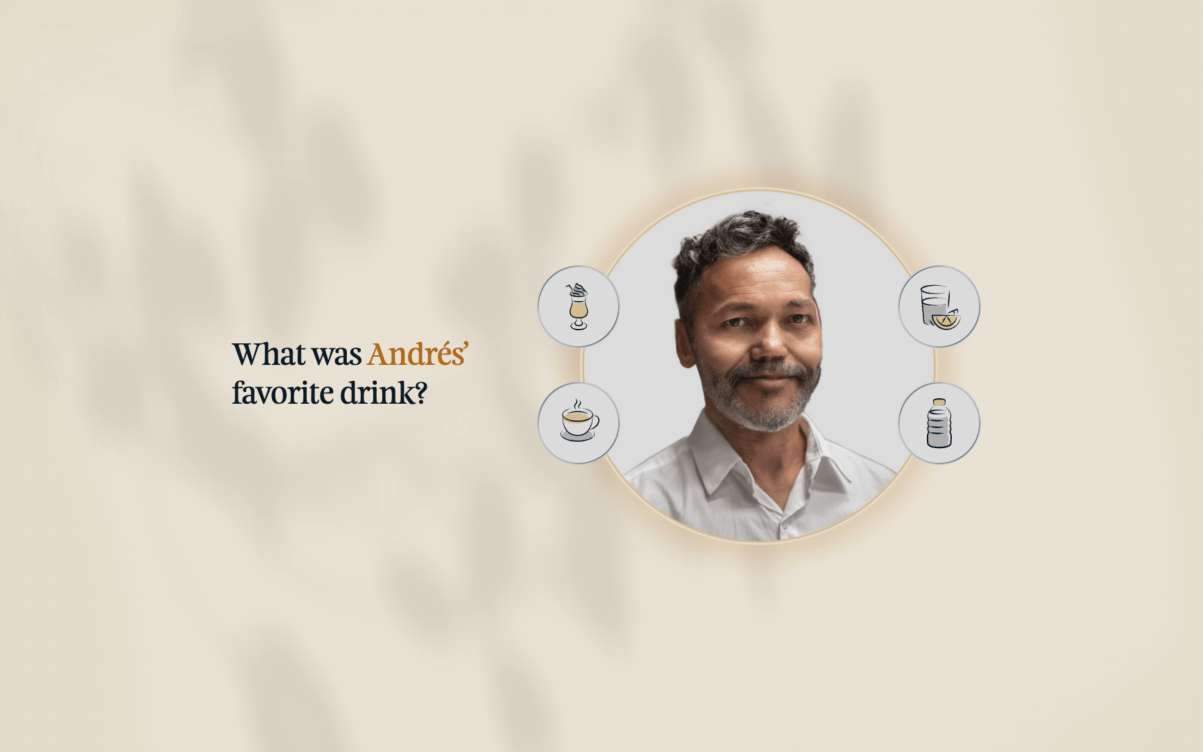[Andres] "I don't even need to ask for a drink when I sit down for breakfast—Saniah brings me a Spanish coffee every day!"